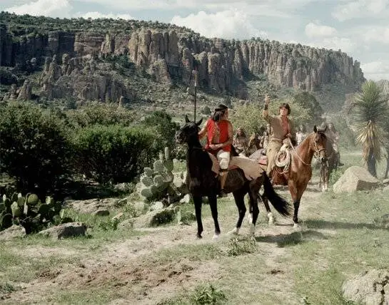 Фильм Битва в Сан-Себастьяне 1968 раскрывает историю в сюжетной линии как Мексика, 1746 год. Беглого преступника Леона Аластрея, переодетого монахом, в деревне Сан-Себастьян ошибочно принимают за священника. Сами жители деревни...