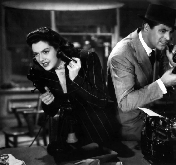 Фильм Его девушка Пятница 1939 раскрывает историю в сюжетной линии как Уолтер Берне - главный редактор газеты, Хильди Джонсон - его бывшая жена и лучший репортер. Однажды она сообщает Уолтеру, что выходит замуж и увольняется....