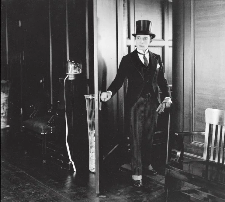 Фильм Сны наяву 1922 раскрывает историю в сюжетной линии как Герой Бастера пробует себя в самых разных профессиях, от помощника ветеринара до актера, и в одной из мастерски поставленных сцен убегает от целой толпы...