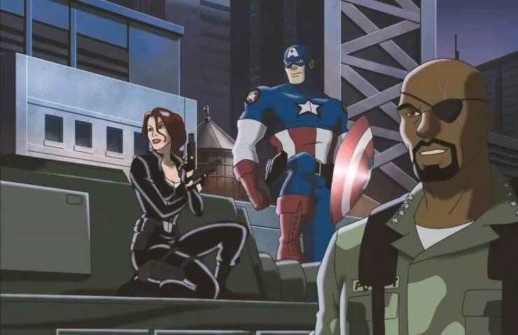 Мультфильм Новые Мстители 2006 раскрывает историю в сюжетной линии как В конце Второй Мировой войны молодой военный по имени Стив Роджерс стал частью эксперимента, благодаря которому США надеялись подавить последние очаги...